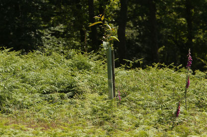 Lorsque vous reboisez une parcelle résineuse, il peut être judicieux de planter une ou deux lignes de feuillus à fruits sec (chênes us, châtaigniers,…).